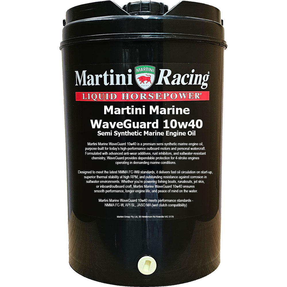 Martini Marine WaveGuard 10w40 is a premium semi synthetic marine engine oil, purpose-built for today’s high-performance outboard motors and personal watercraft. Formulated with advanced anti-wear additives, rust inhibitors, and saltwater-resistant chemistry, WaveGuard provides dependable protection for 4-stroke engines operating in demanding marine conditions.
